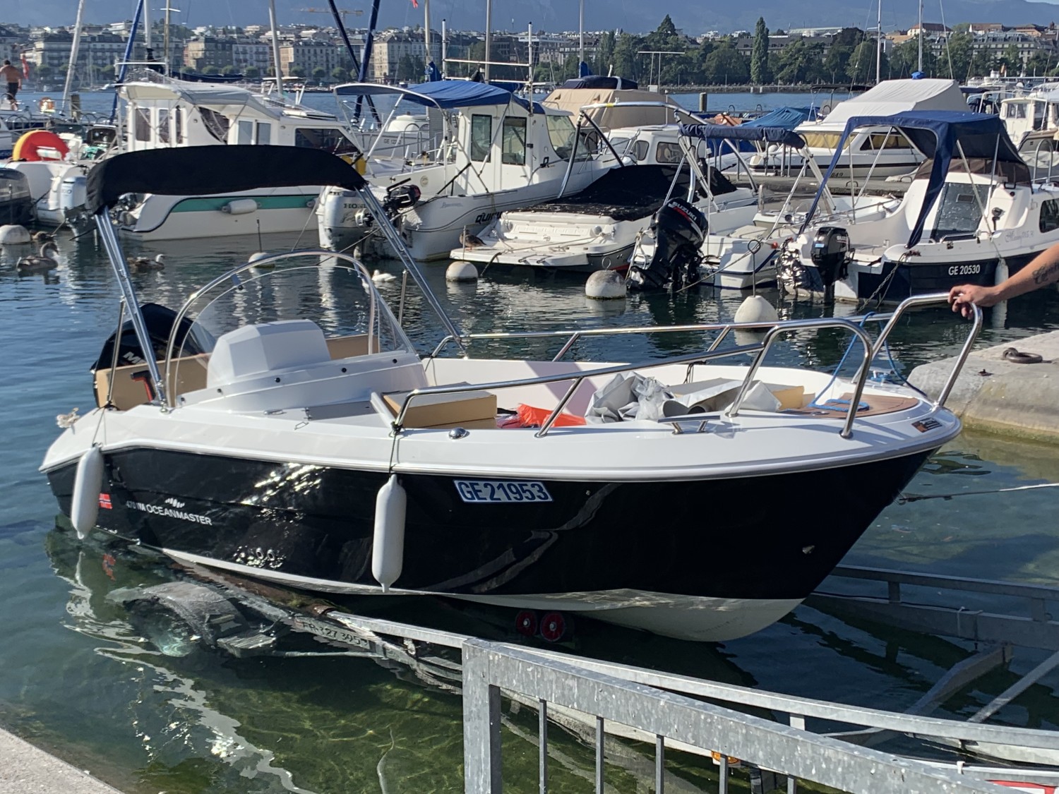 Je vends un bateau à moteur très bien entretenu, équipé pour le ski nautique avec un Turbo Swing. La proue peut être transformée en une grande surface de couchage. Le conducteur est protégé par un bimini. Le bateau se trouve à Genève (stockage à sec). Il totalise environ 500 heures de fonctionnement, est livré avec une housse et n'a servi qu'à des essais. Moteur Mercury F60 ELPT, 60 ch. Le bateau pèse 425 kg et est homologué pour 6 personnes. Du plaisir pour toute la famille sur une longueur de 4,65 m et une largeur de 1,90 m.
